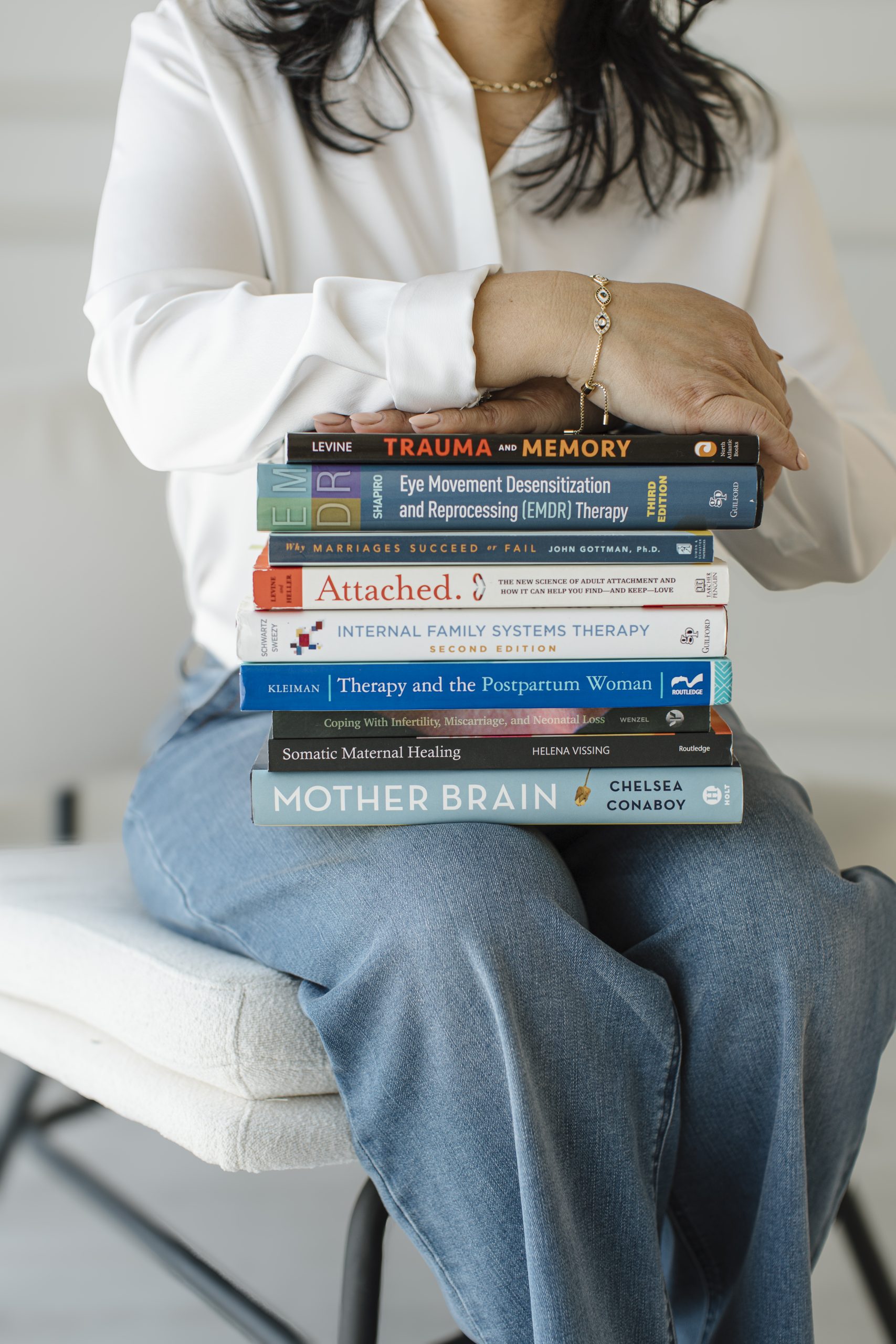 In addition to individual therapy, I facilitate a free virtual pregnancy and postpartum support group for mothers in Southern California, and I speak on perinatal mental health to help raise awareness of how trauma shapes the parenting experience.